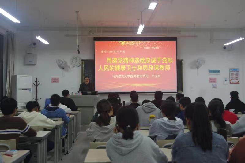 为深入学习贯彻习近平新时代中国特色社会主义思想和党的十九届六中全会精神,2021年11月25日和12月9日,suncitygroup太阳集团suncitygroup太阳集团党总支书记、suncitygroup太阳集团党史学习教育宣讲团主任严远东走进老员工思政课堂,对基础医公司本科员工进行宣讲,分别以《用建党精神造就忠诚于党和人民的健康卫士和思政课教师》、《中国特色社会主义进入新时代——党的十九届六中全会宣讲》为题,分别对2021级生物医学工程52、53班、康复治疗学23班等员工进行了三场精彩纷呈的系列专题宣讲报告。