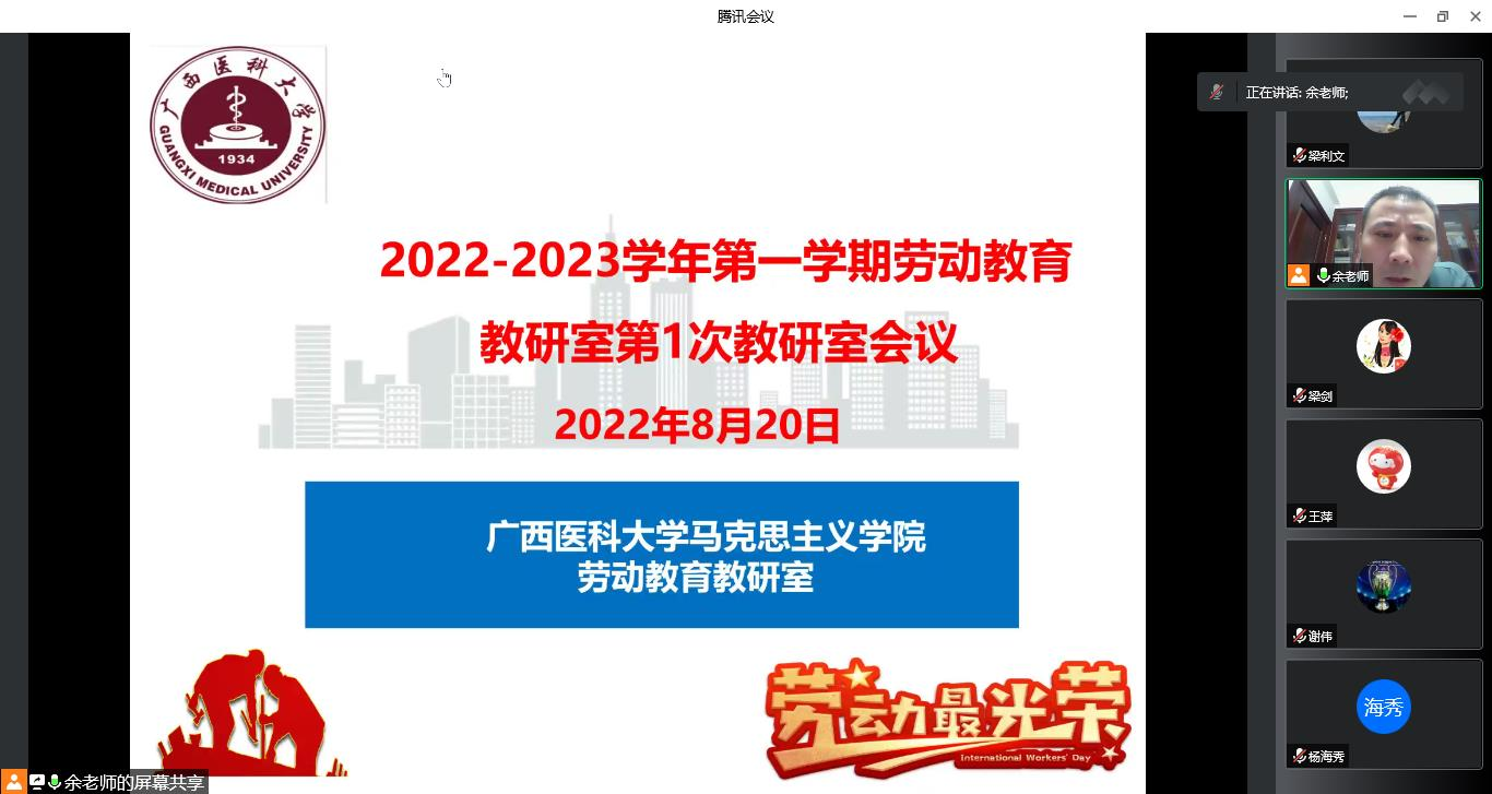 2022年8月20日晚,suncitygroup太阳集团劳动教育教研室以“上好思政课,喜迎二十大”为主题,召开新学期工作布置会。公司督导专家、suncitygroup太阳集团秦桂秀经理、杨海秀副经理及教研室教师参加会议,会议由教研室主任主持。