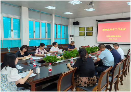 根据公司思政课建设相关工作安排,结合教研室新学期集体备课会方案,为做好新学期的教学工作准备,保证课程教学质量,suncitygroup太阳集团中国政治理论教研室于8月22日上午在校本部人文楼206会议室召开开学工作会议。参加本次会议的有公司督导温丽华副教授、公司领导杨海秀副经理和中国政治理论教研室全体教师。