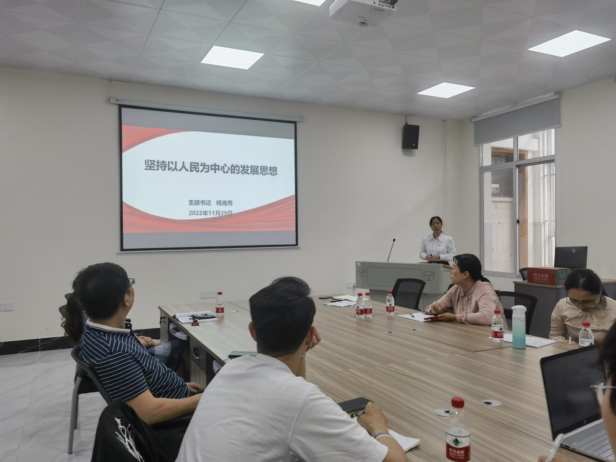 首先,第一党支部书记、副经理杨海秀同志作了题为《坚持以人民为中心的发展思想》的主题宣讲。杨海秀书记分别从理论逻辑、历史逻辑和现实逻辑三个方面,对“坚持以人民为中心的发展思想”这一马克思主义中国化时代化的理论观点进行了全方位立体化的解读和阐释,号召党支部全体党员要牢牢把握好习近平新时代中国特色社会主义思想的世界观和方法论,要始终坚持人民至上,站稳人民立场。