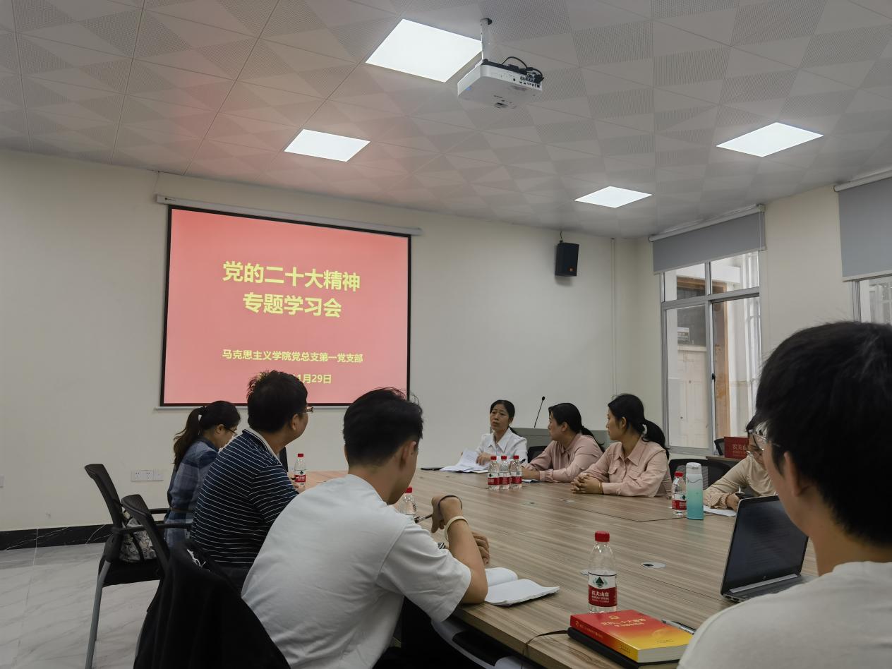 随后,第一党支部各位同志分别结合各自工作岗位的实际情况谈了近段时间以来学习党的二十大精神的情况,并表示要进一步加强理论学习,学懂弄通党的二十大精神,继续在习近平新时代中国特色社会主义思想的指导下做好教学、科研和老员工思想政治工作,为广大青年员工讲好马克思主义中国化时代化的最新理论成果,引领青年员工深刻领悟党的二十大精神,凝聚青春奋进力量。