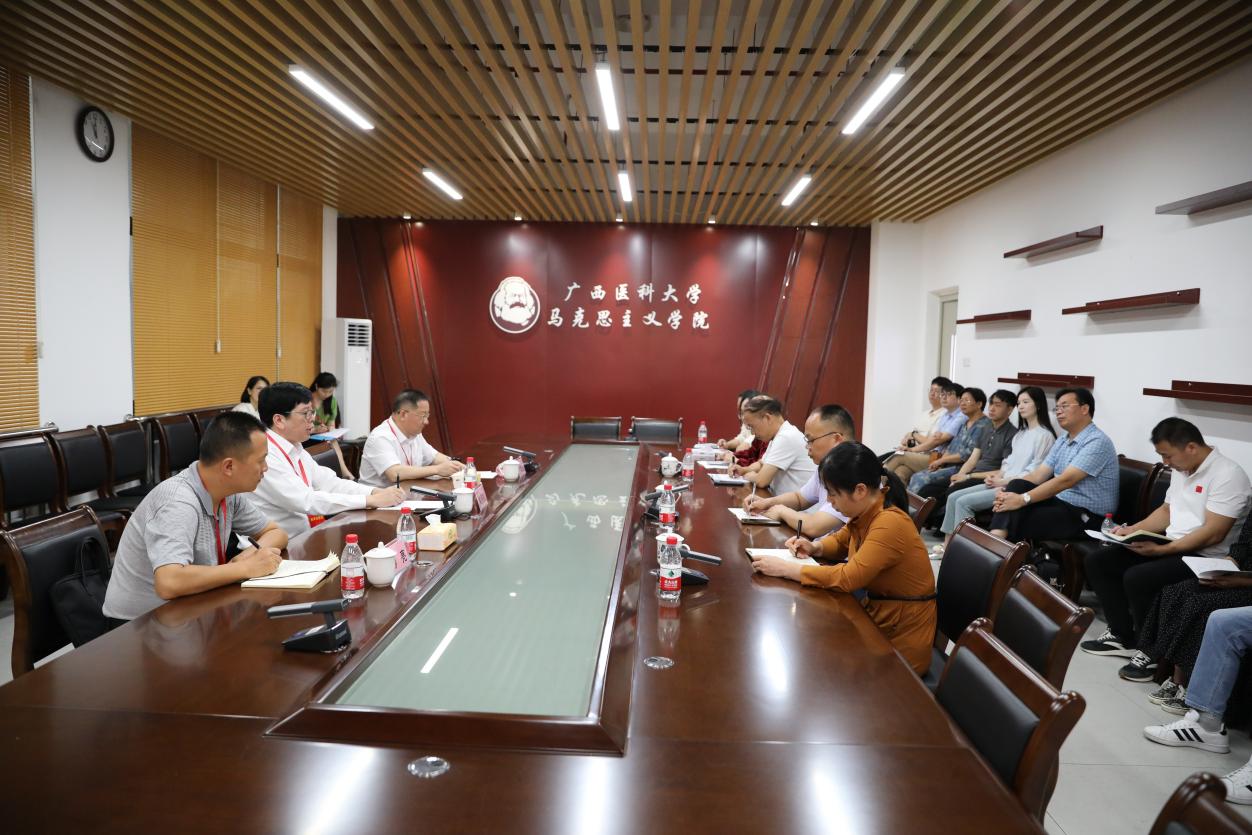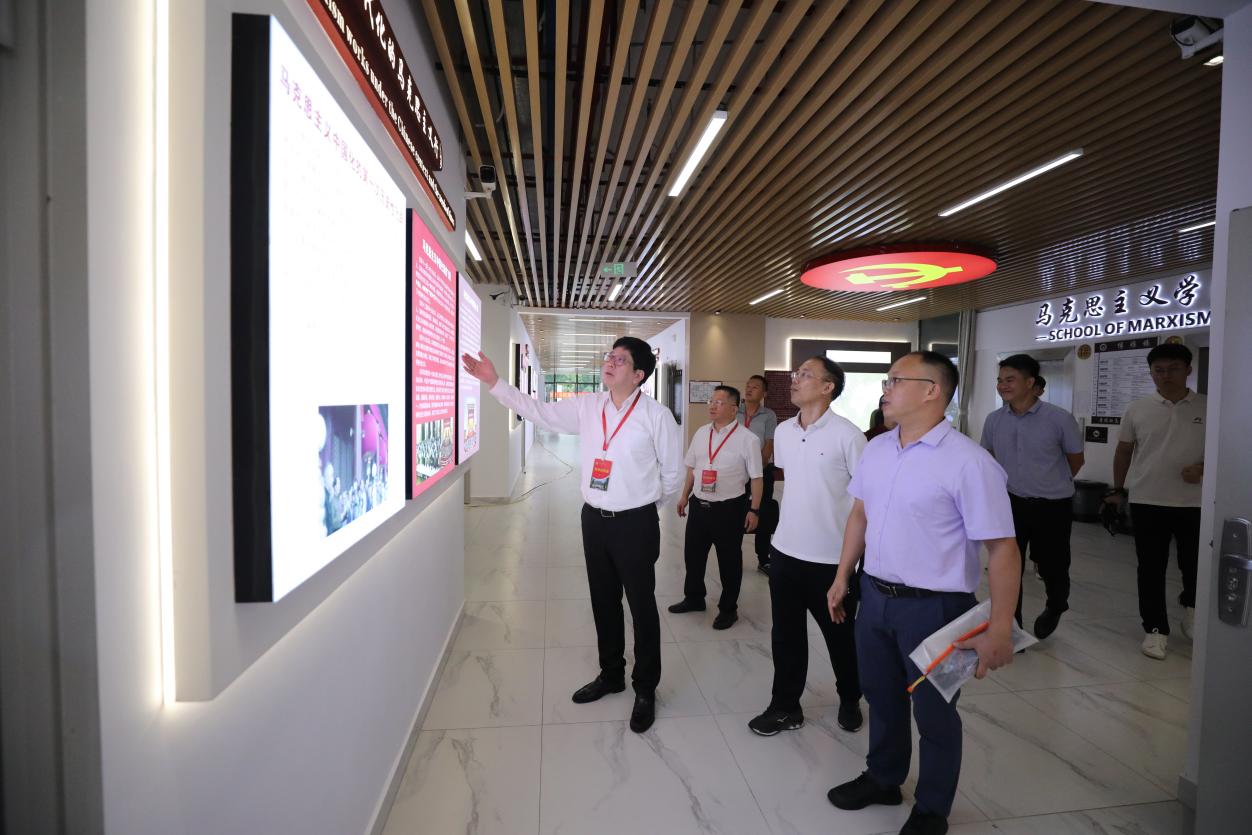 在走访调研前,黄照权书记一行还来到A1栋教学楼302教室听取了公司崔素娟老师讲授的“马克思主义基本原理”课。