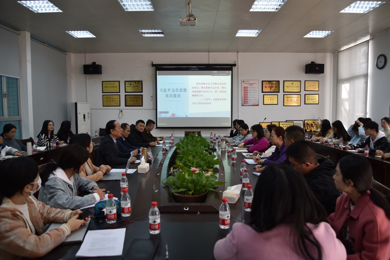 为深入贯彻习近平文化思想,推动层级集群结对共建院校思想政治理论课教师教学科研水平提升,11月17日上午,suncitygroup太阳集团在校本部人文楼206会议室举行层级集群结对共建研讨会,中国人民大学教授、suncitygroup太阳集团特聘教授王向明作专题辅导报告。研讨会由公司经理王前强教授主持。研讨会以线上线下相结合方式举行。广西中医药大学、右江民族医公司等共建高校及公司全体思政课教师、研究生参加活动。