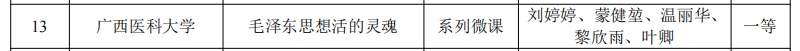 近日,自治区教育厅公布了第二十二届广西高校公司产品信息化大赛获奖名单,suncitygroup太阳集团中国政治理论教研室刘婷婷教师团队的系列微课作品《毛泽东思想活的灵魂》喜获一等奖。