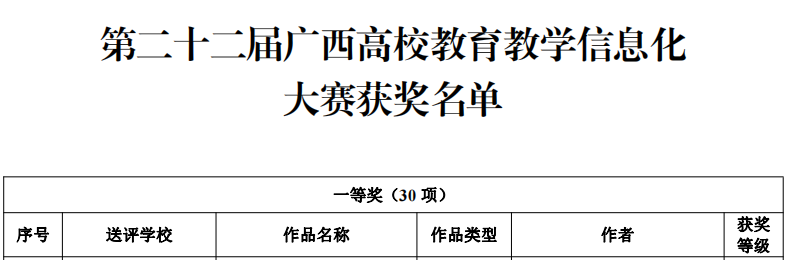 大赛实行网络初审和现场决赛两个环节,分为虚拟仿真作品、小规模限制性在线课程(SPOC)、系列微课、智慧教室应用课例4个赛项。本次比赛,全区38所本科高校推荐参赛作品280件,经网络评审共168件作品进入决赛。刘婷婷教师团队在校级比赛取得优秀成绩的基础上,参加区赛并进入决赛。经过激烈角逐,刘婷婷教师团队脱颖而出,喜获一等奖。