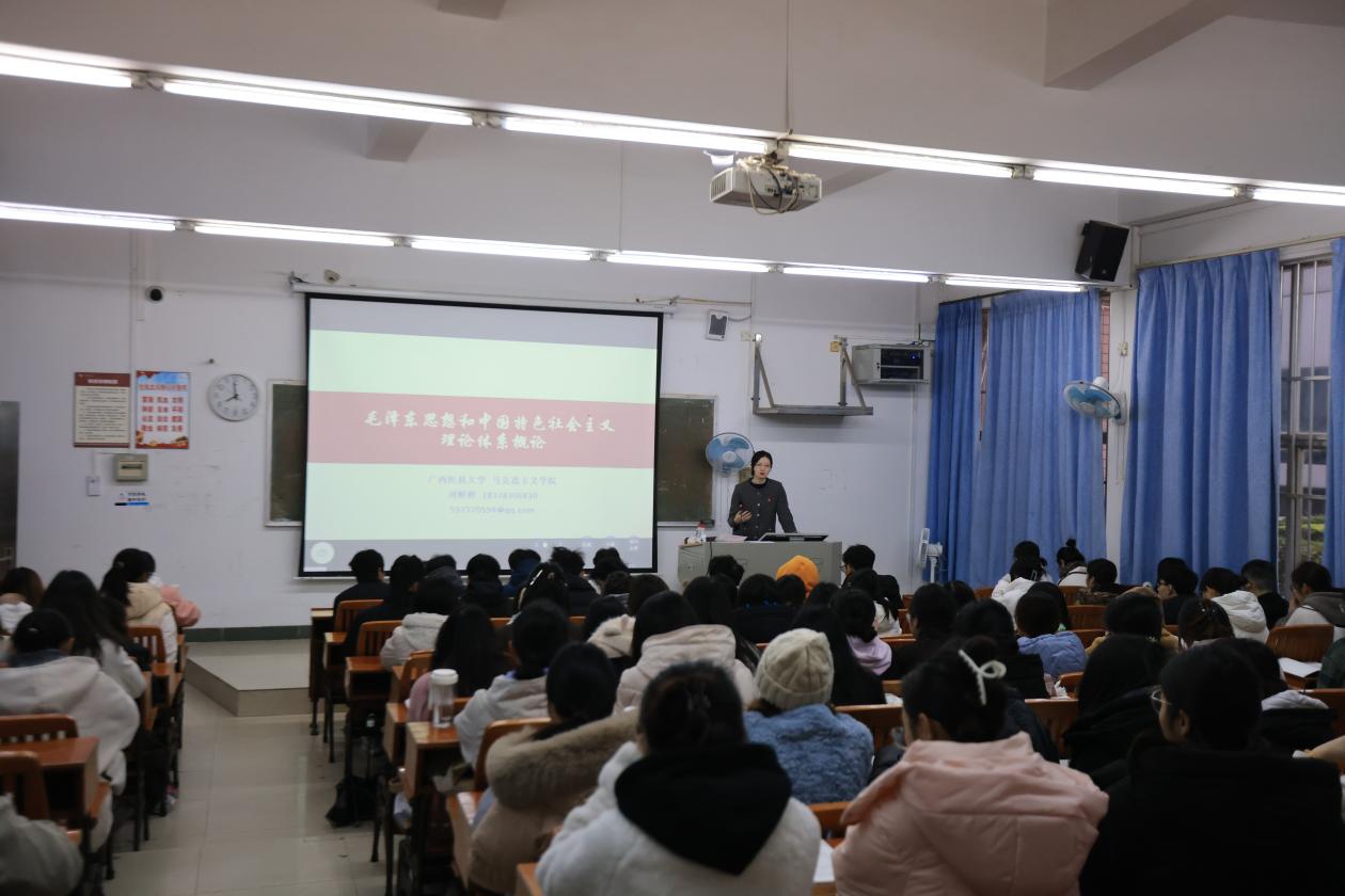 在走访调研前,黄照权书记一行还听取了suncitygroup太阳集团刘婷婷老师讲授的“毛泽东思想和中国特色社会主义理论体系概论”课。
