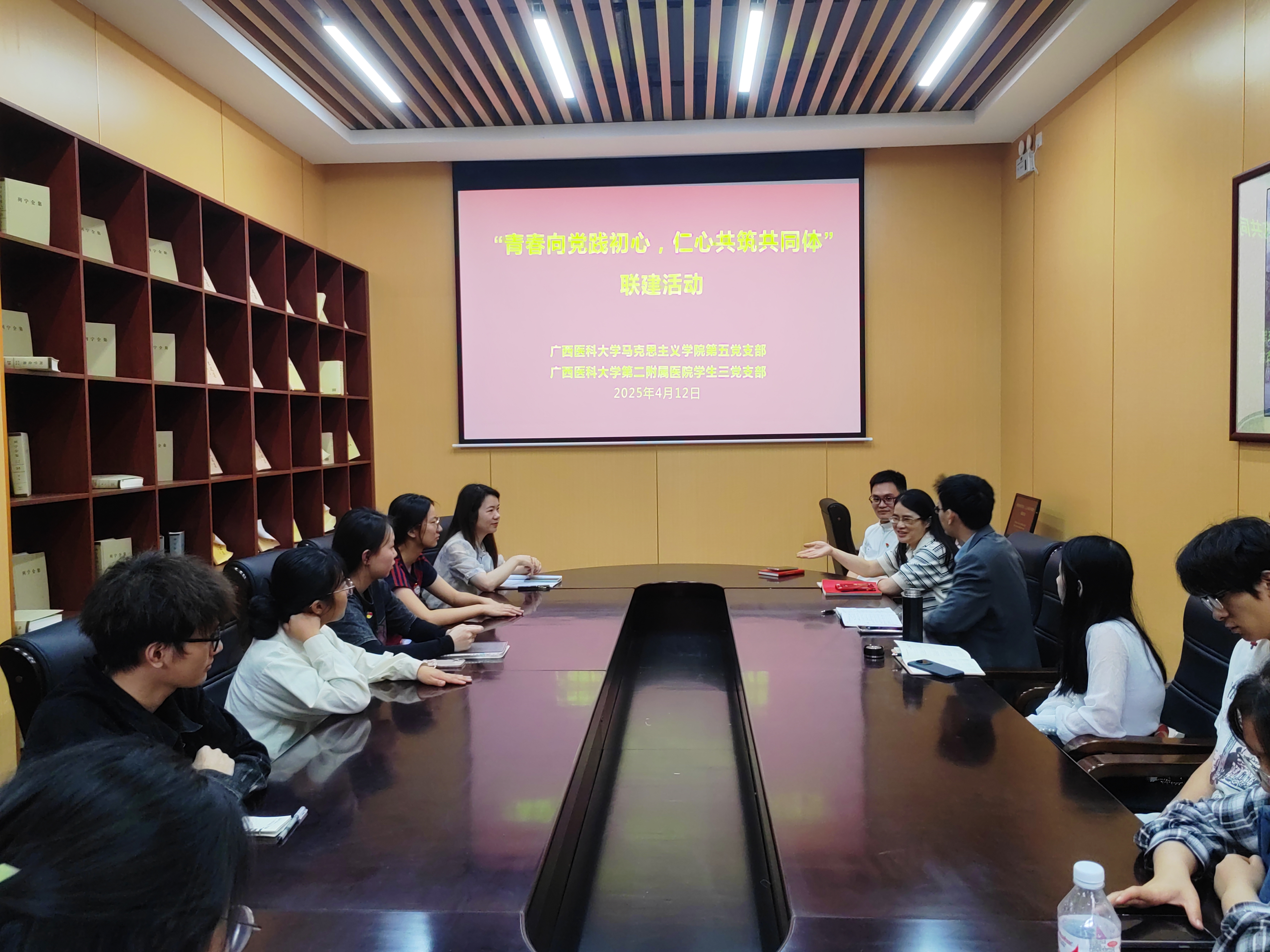 为铸牢中华民族共同体意识,深化医学教育中的民族团结实践,suncitygroup太阳集团第五党支部与第二附属医院员工第三党支部于4月12日联合开展“青春向党践初心,仁心共筑共同体”主题联建活动,以党建为纽带推动民族团结与医学育人的深度融合。第五党支部庞铭辉、蒙健堃、叶卿和谢莹,以及第二附属医院员工第三党支部黄美思书记及30名员工党员参与活动。