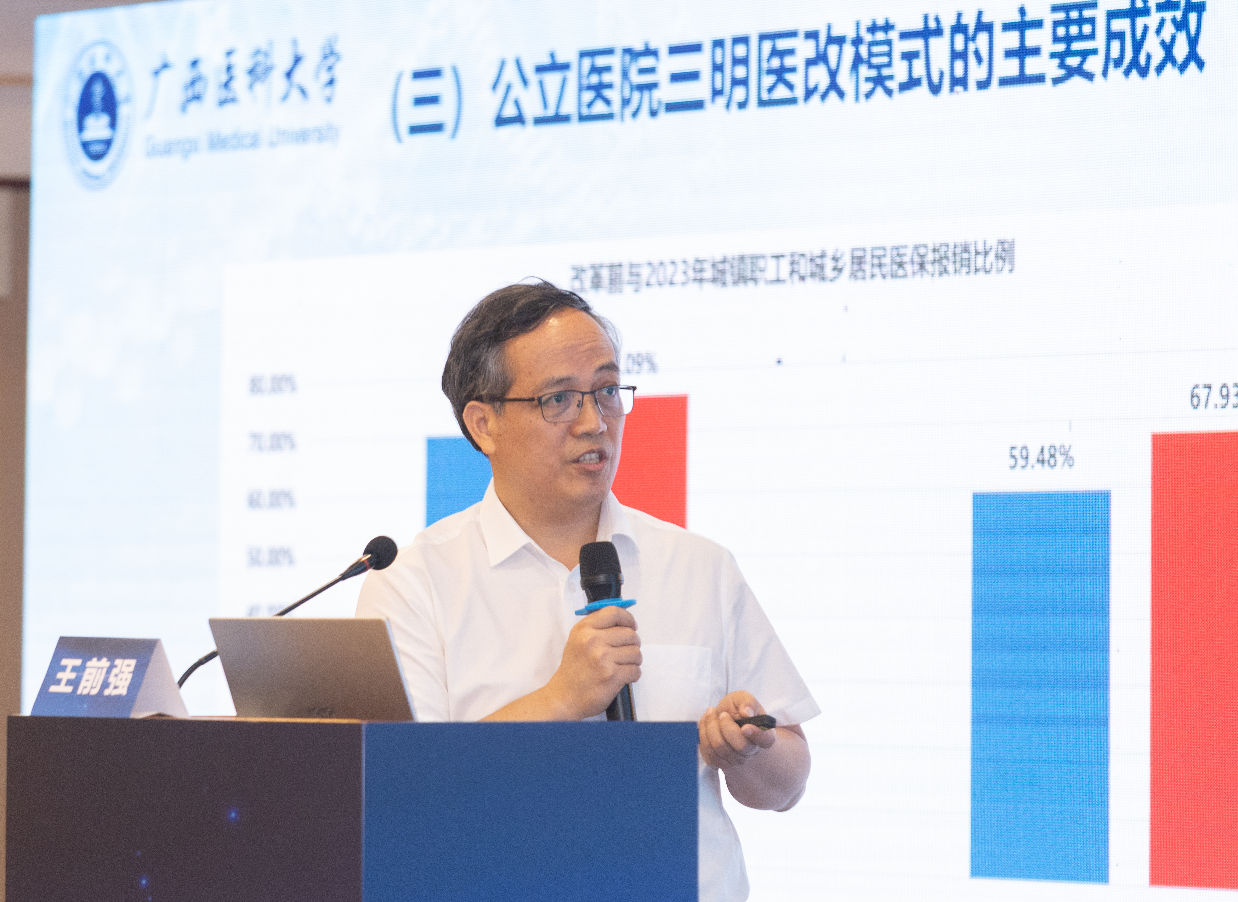 会上,王前强教授向与会嘉宾作《基于三医协同的三明医改逻辑及其推广的预期影响》主题演讲。演讲从三明医改改在何处、三明医改的逻辑与实践创新、三明医改的学理依据及理论创新、三明医改经验推广的预期影响及应对策略等问题进行了深入探讨,得到了与会专家与代表的认可或关注。