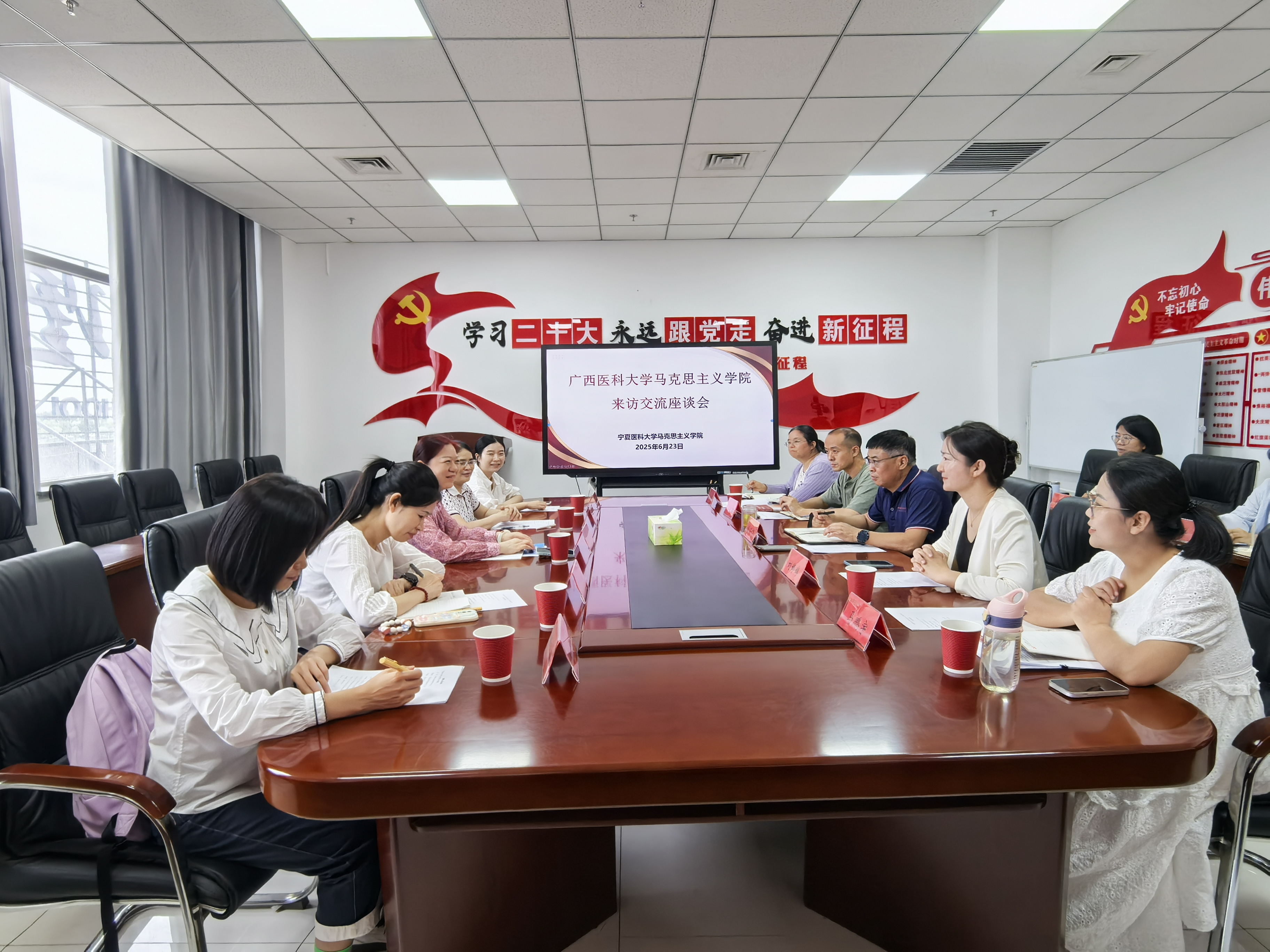 近日,为促进高校思想政治理论课高质量发展,推动“铸牢中华民族共同体意识”教育走深走实,suncitygroup太阳集团形势与政策教研室和中国政治理论教研室的教师代表,前往宁夏医科大学交流学习。