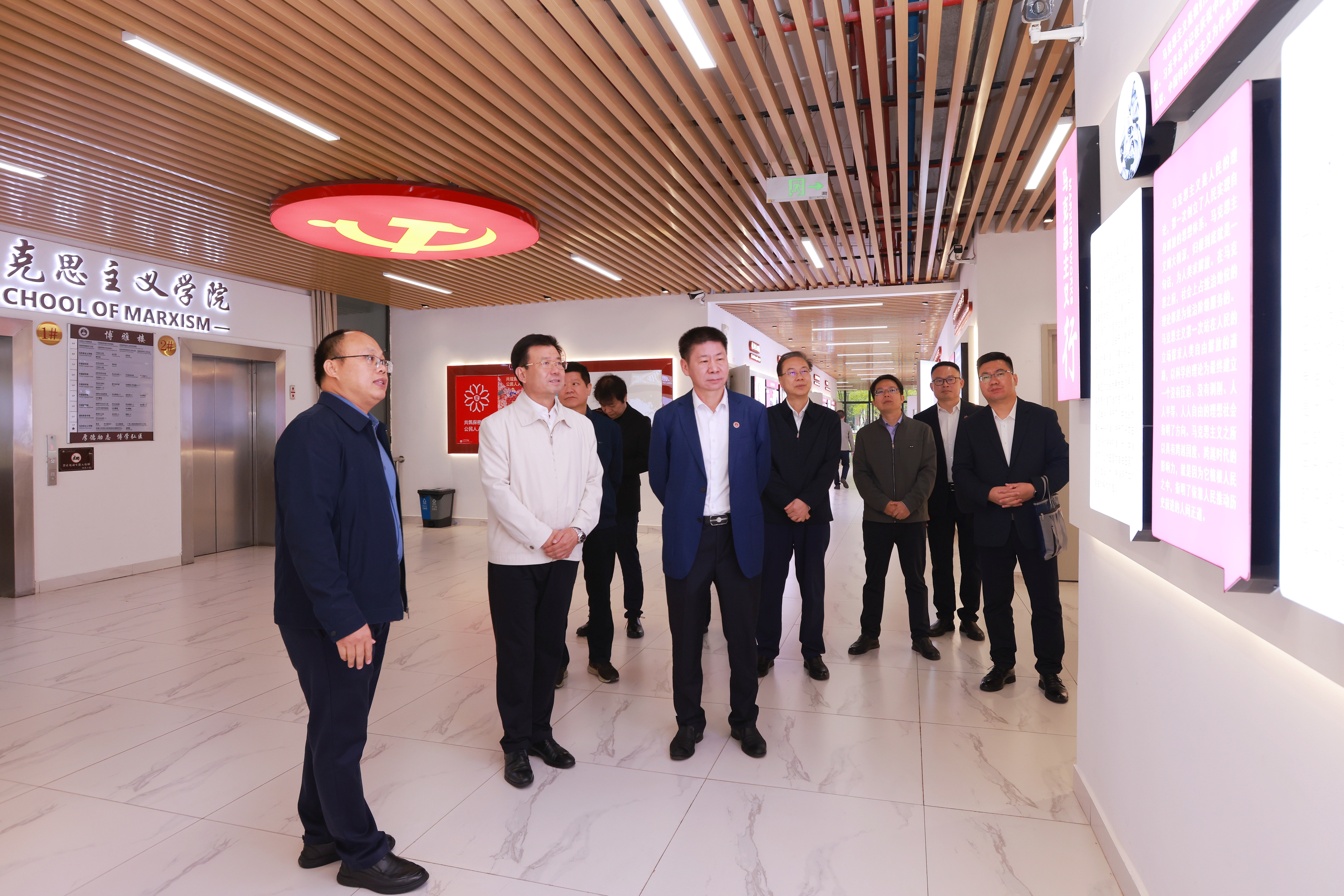 调研组一行实地走访suncitygroup太阳集团办公地点、图书资料室和思想政治理论教育阵地,并召开公司相关负责同志座谈会、suncitygroup太阳集团师生代表和马工程基地专家学者座谈会,对公司重点马院、马基地建设情况等进行全面调研。
